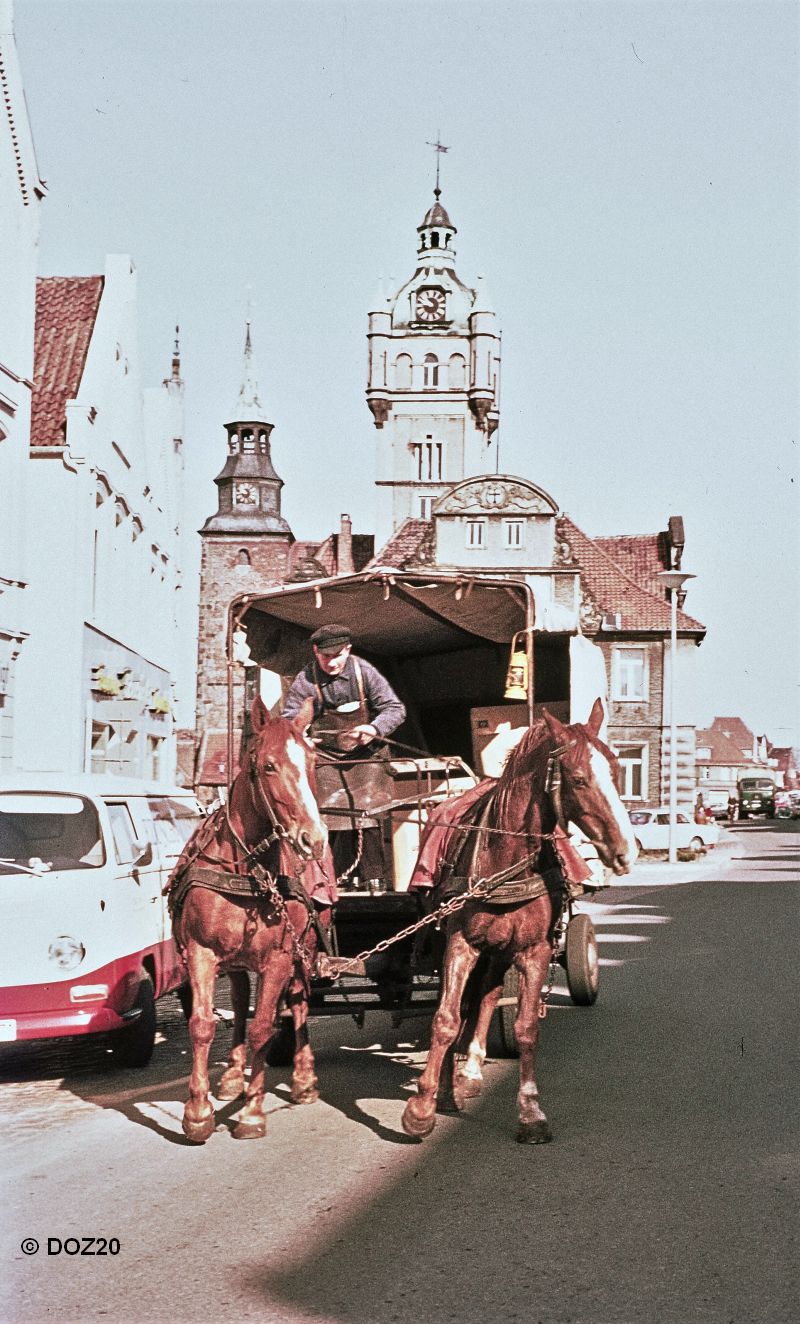 Rollkutscher Johann Schloen lieferte bis 1972 mit Pferd und Wagen u. a. Stückgut vom Verdener Güterbahnhof zu den Empfängern.